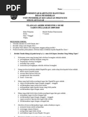 Berikut soal ulangan plks kelas 5 semester 2 dan kunci jawaban yang terdiri dari 15 soal pilihan ganda dan 10 soal uraian.