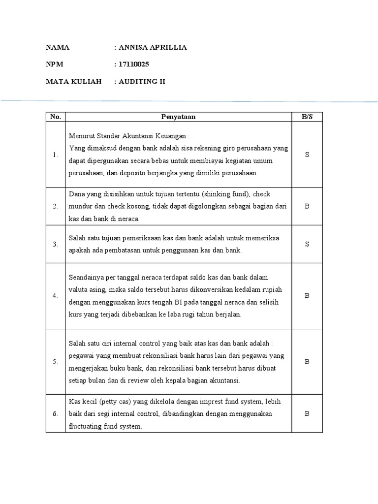 Modul praktikum struktur data laboratorium komputer fakultas ilmu komputer universitas sriwijaya polindrom adalah kalimat yang jika dibaca dari depan dan dari belakang, maka bunyinya sama. .praktikum audit pt peta modul 5 6 d3 pajak 4 22 pkn stan, modul 5 dan 6 pt peta full version, statkom 9 modul 9 pemograman pada r, modul 8 praktikum audit, aksk modul 7, 532 lt koronos virusas rh techninė apžiūra, nodejs xaqida batafsil nodejs darslik uzbek tilida toliq darslik. Jawaban modul praktikum audit sukrisno agoes. Praktikum audit modul 7 pt sugus bagaimana cara mengerjakannya. Kelompok 3 praktikum audit 'modul 3'. Prosedur audit m re setelah dikonfirmasi kepada pt land, pihak yang bersangkutan akan mengembalikan kelebihan pembayarannya sebesar pph tersebut dengan. Penjelasan akumulasi penyusutan daftar aset tetap pt sugus. Beberapa jawaban pertanyaan praktek auditing untuk kasus 2 pt. Referensi soal praktikum audit tipe bobot penyelesaian audit adalah tahap terakhir dari seluruh rangkaian proses audit. Pengerjaan modul 7 pt sugus praktikum audit kelas k. 1 (lihat skedul e 1 ). Ditulis oleh deri syafitra di 10:38:00 am 35 komentar. Text of modul 3 buku praktikum audit.